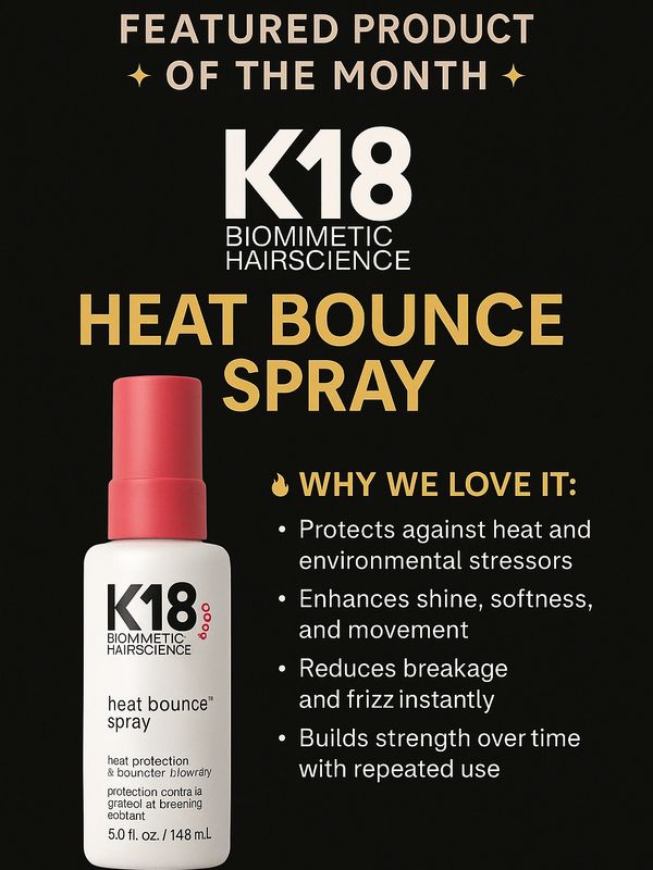 Meet your new heat-protecting bestie! The K18 Heat Bounce Spray is a lightweight, leave-in mist that not only guards your strands from up to 450°F of heat, but also delivers a bouncy, frizz-free finish with lasting shine.